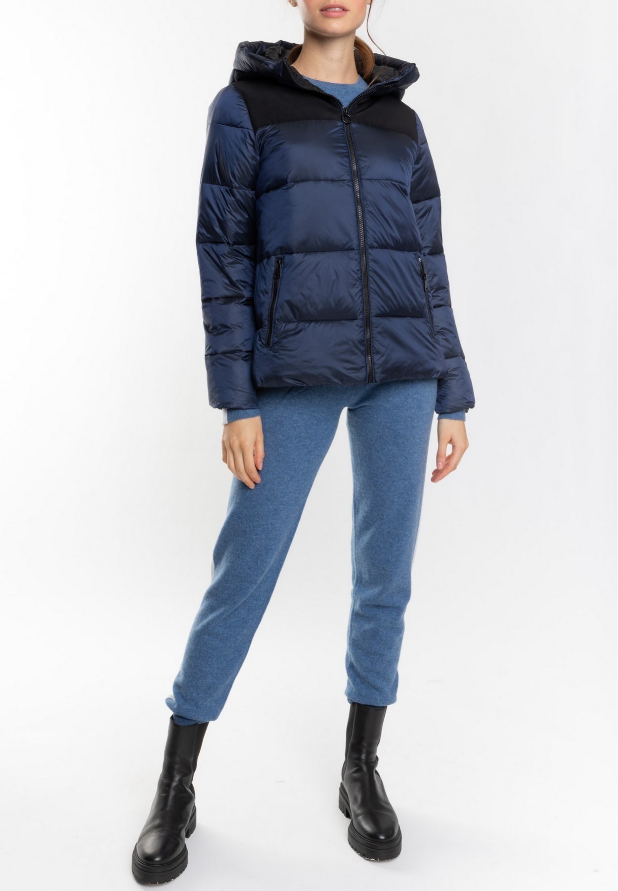 Elle retient la chaleur grâce à son rembourrage et elle vous protège de la pluie avec sa capuche